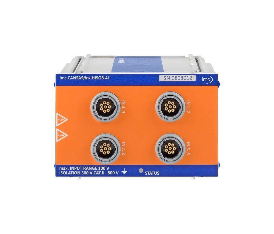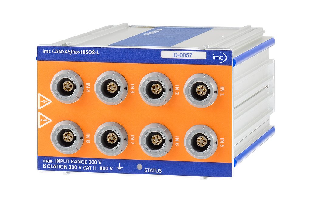 Das HV-Messmodul imc CANSASflex-HISO8-L erlaubt die sichere und präzise Messung von acht Widerstandsthermometern (PT100/PT1000) und Kleinspannungen (±20 mV bis ±100 V) wie etwa von Strommess-Shunts im HV-Umfeld. Es ist insbesondere für Anwendungen im Bereich E-Mobility prädestiniert.