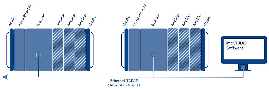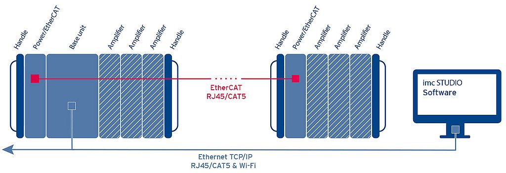 Modulaarisena laitteena imc CRONOS-XT voidaan jakaa osiksi jotka sijoitetaan tilallisesti sopivimpiin paikkoihin. Kun vahvistimet viedään lähelle mittauspisteitä, vähennetään herkkien ja usein kalliiden anturikaapelien tarvetta. Osat yhdistetään imc:n EtherCAT-pohjaisella väylällä jonka kautta vahvistimet saavat synkronoinnin ja näytteet kerätään keskusyksikölle.