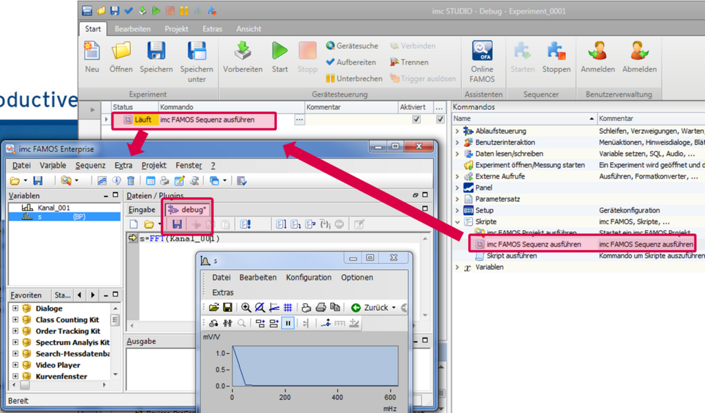 Die Integration von imc FAMOS zur automatisierten Datenanalyse durch Ausführung von Sequenzen wurde perfektioniert.