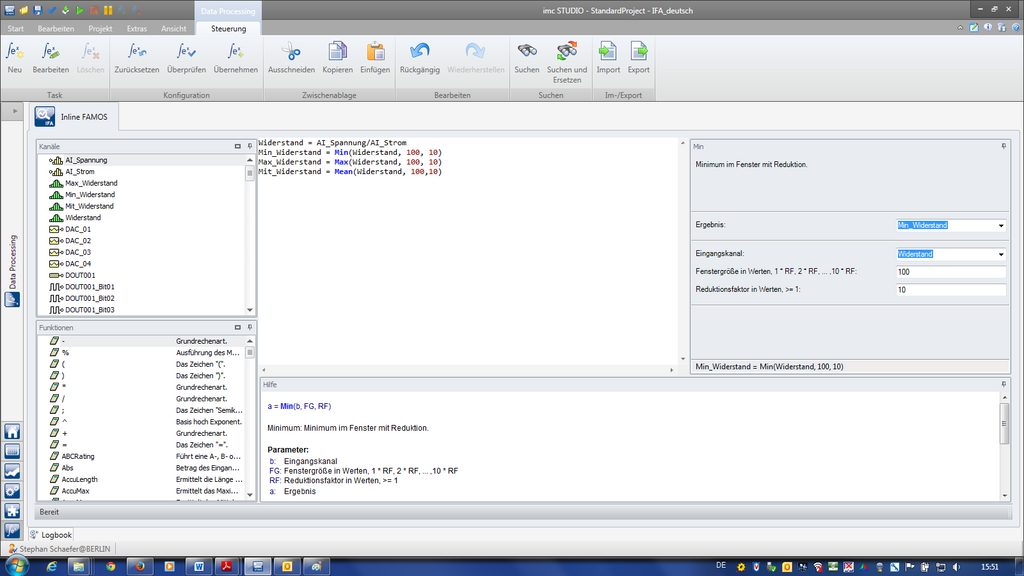 - Ergebnisse werden in Form virtuelle Kanäle ausgegeben und können gespeichert und weiter verrechnet werden